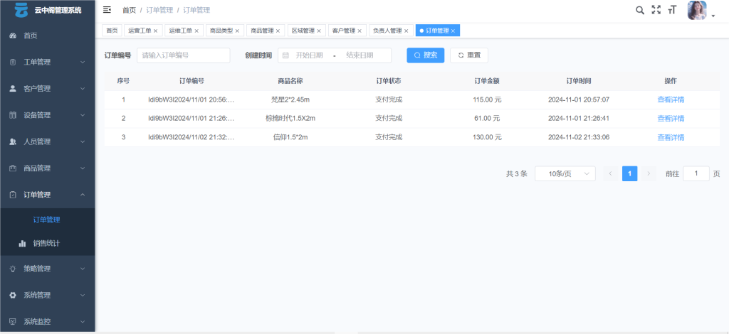 - 提供工单统计功能,包括工单总数、完成工单数、进行中的工单数和取消工单数。